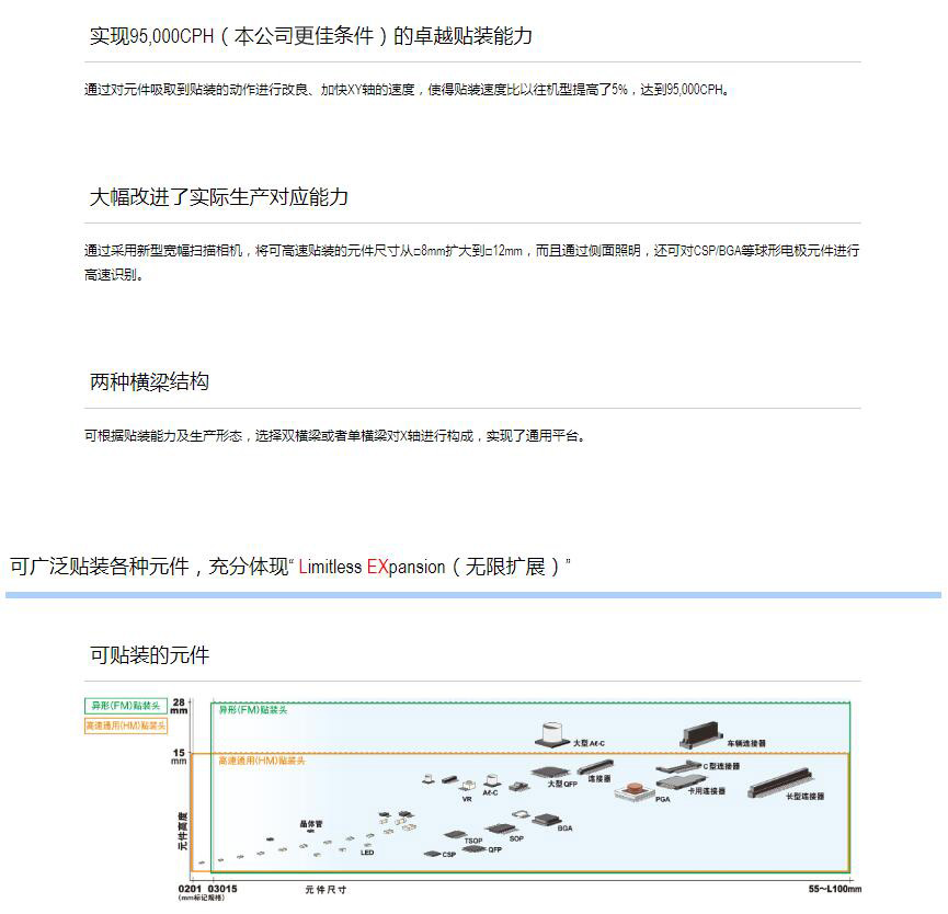2.大幅升級(jí)“高速通用一體化貼裝頭”,在世界同級(jí)別產(chǎn)品中高水平的多功能型表面貼片機(jī).