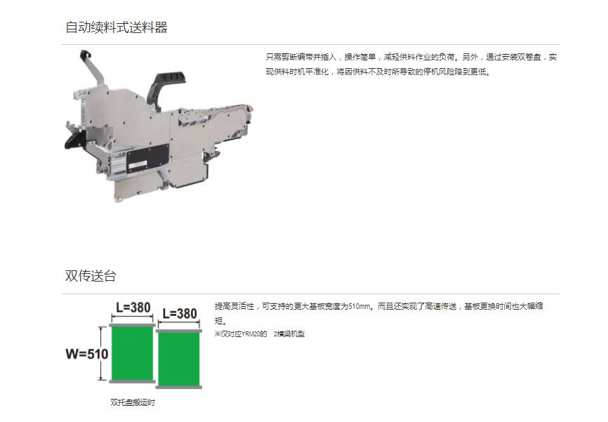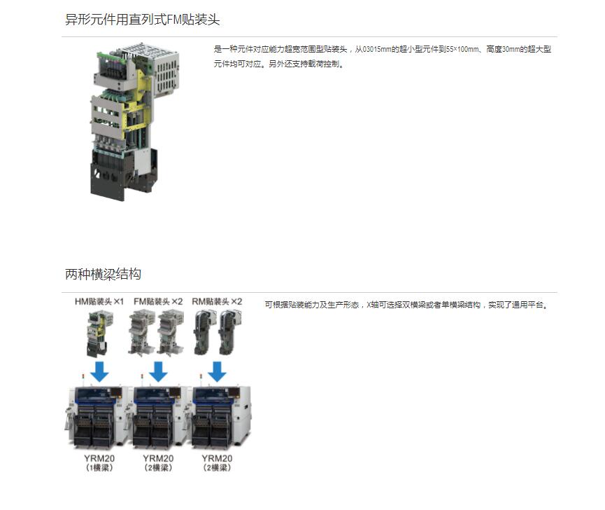YRM20高效模塊貼片機 極 限改進(jìn)“單一貼裝頭解決方案”,具有卓絕生產(chǎn)率和通用性的萬 能型貼片機1.融合Σ系列產(chǎn)品的技術(shù),實現(xiàn)卓絕的生產(chǎn)率.2.采用“單一貼裝頭解決方案”,廣泛對應(yīng)各種生產(chǎn).3.標(biāo)準(zhǔn)配備可維持高品質(zhì)貼裝的各項功能.4.通過運用豐富的功能群,實現(xiàn)高效生產(chǎn).