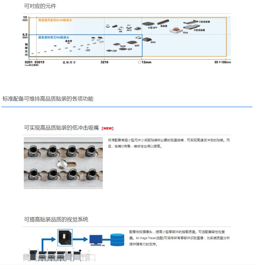 2.采用“單一貼裝頭解決方案”,廣泛對應(yīng)各種生產(chǎn).