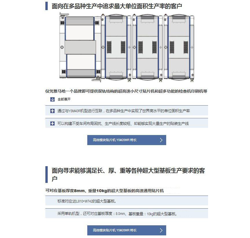 YSM20WR 高效模塊貼片機1.進一步極限改進“高速通用一體化貼裝頭”,在同級別產品中達到更快貼裝速度的萬能型貼片機。2.大幅升級“高速通用一體化貼裝頭”,在世界同級別產品中更快的萬能型表面貼片機。3."高速通用一體化貼裝頭”同時實現高速性與通用性,提供理想的解決方案"。4.可廣泛貼裝各種元件,完美詮釋 “L…