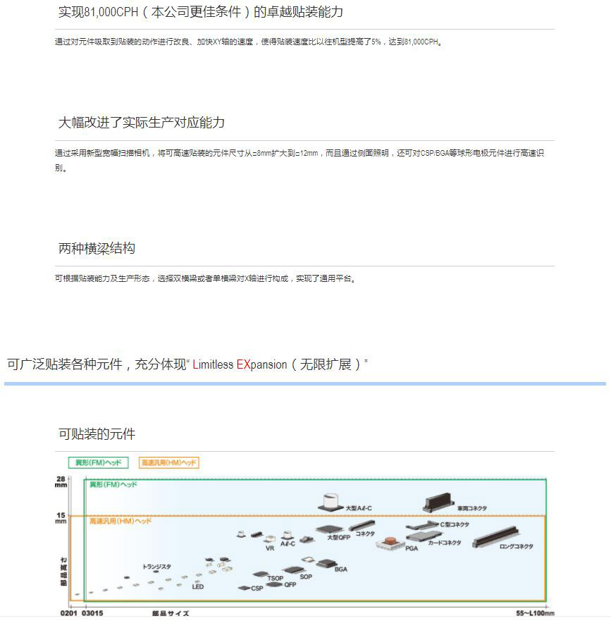 2.大幅升級“高速通用一體化貼裝頭”,在世界同級別產品中更快的萬能型表面貼片機。