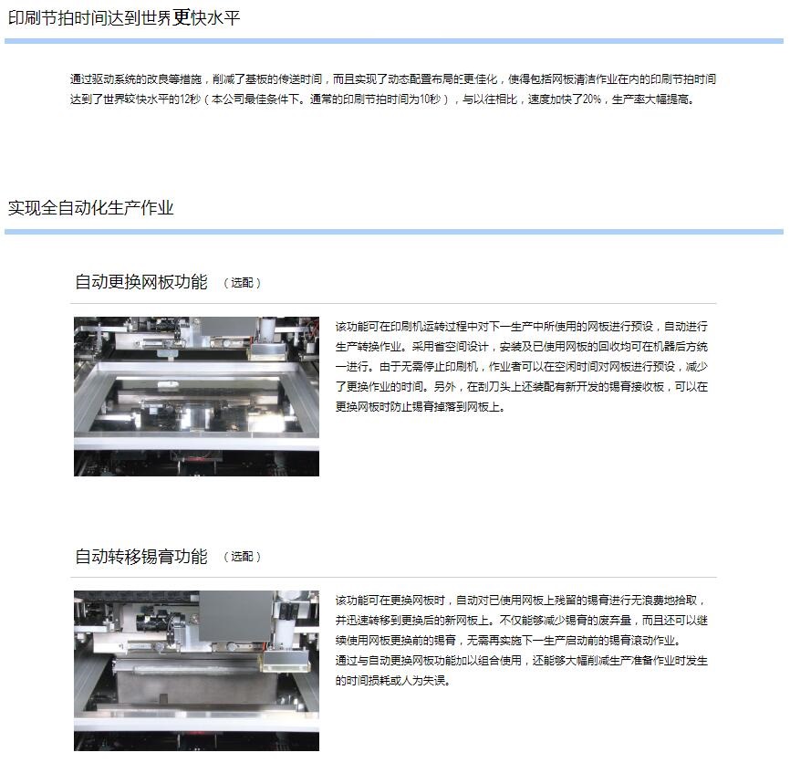 1.印刷節拍時間達到世界更快水平,實現全自動化生產作業。
