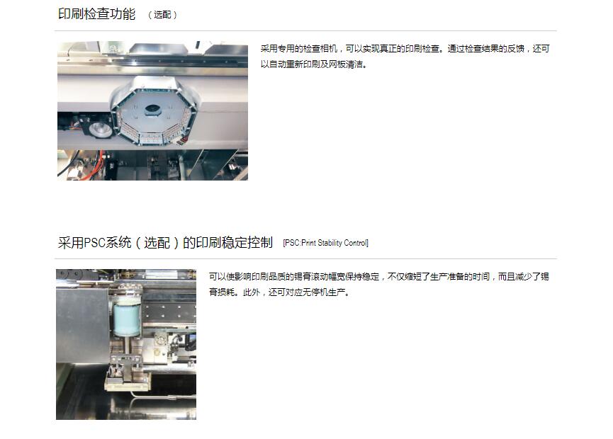YSP10 高端印刷機1.印刷節拍時間達到世界更快水平,實現全自動化生產作業。2.超高速印刷性能 包括網板清潔作業:12sec/cycle / 10sec/cycle3.重復定位精度:6σ : ±0.01mm4.支持大型基板:L510 x W510mm [選購品: L650 x W510mm]5.網板尺寸:MAX.750×750mm